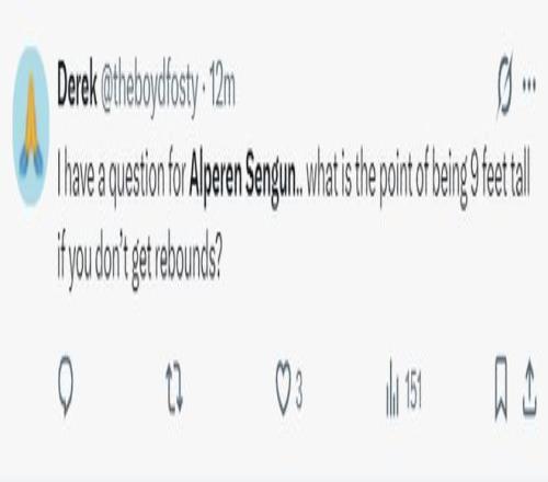 北京时间1月24日,火箭以111-104复仇活塞。这场比赛火箭队的先发中锋阿尔佩伦-申京延续了他对阵费城的低迷状态,此役他的拉胯更盛,火箭球迷们对他已经忍无可忍在社媒上各种炮轰,全都是因为申京作为一名6尺11(2.11米)的中锋只有1个篮板。